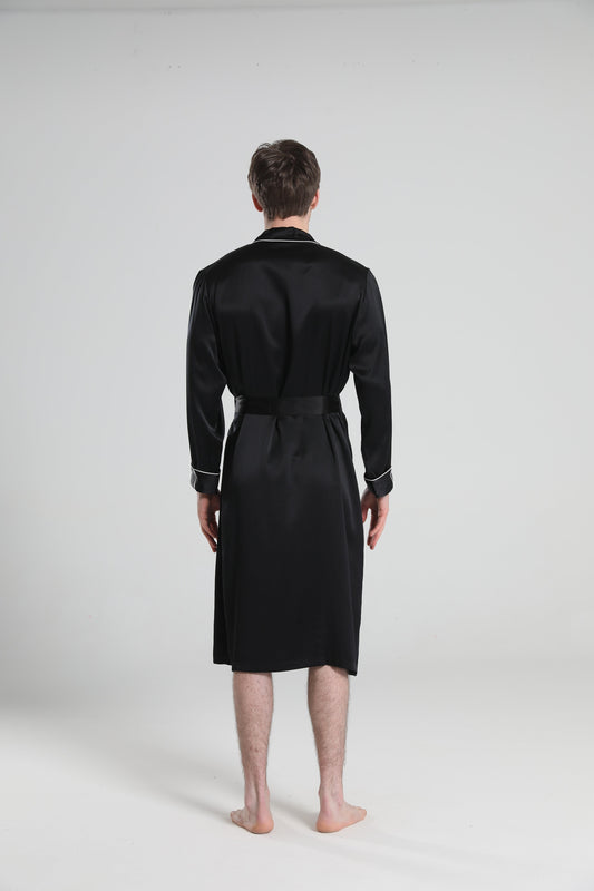 Type: Klassische Herren Seiden-PyjamasMaterial: 19 Momme Charmeuse-Seide Details:Ein luxuriöses Update eines klassischen Designs, das Herren-Pyjama-Set mit langen Ärmeln und Knopfleiste aus weicher, glänzender Seide, die Ihre Haut während des Tragens pflegt und umhüllt. Dieses Set bietet eine entspannte Passform, um Ihnen maximalen Komfort beim...- 215,99 €