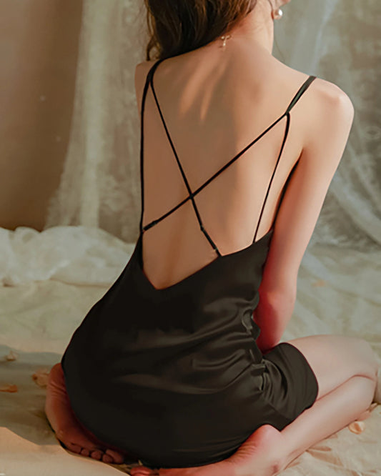 Seidennachthemd im Slip-Stil mit Kreuzrücken-Design
