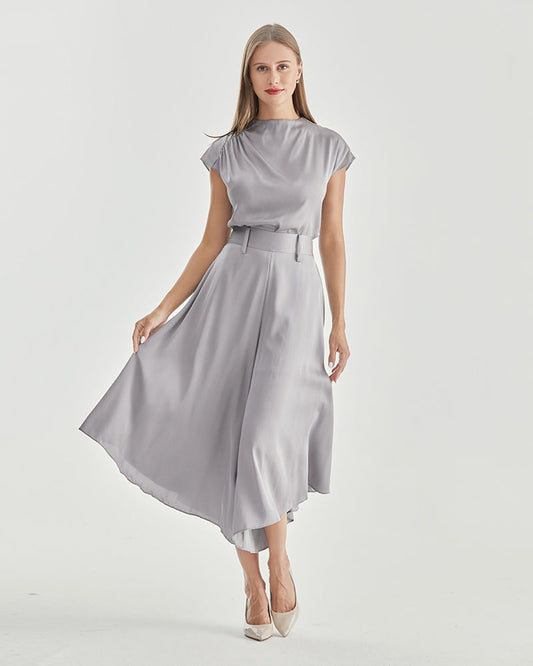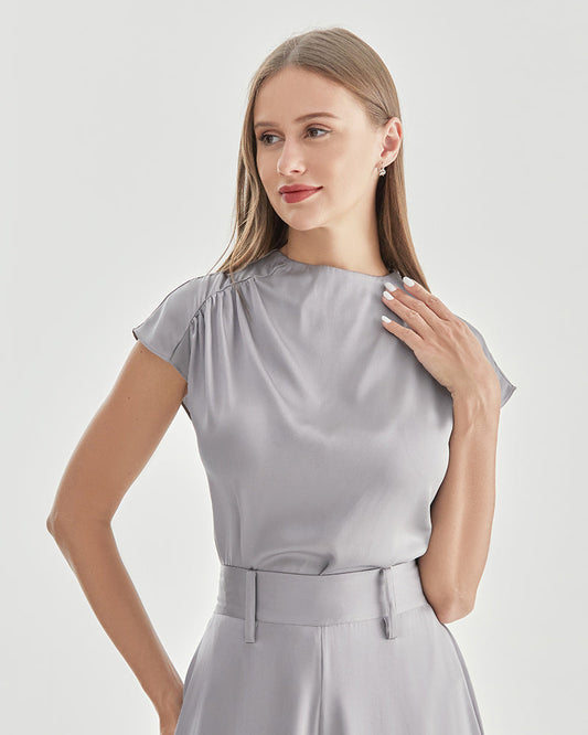 Kurzarm Seidenbluse Damen – Wasserfallausschnitt Elegant