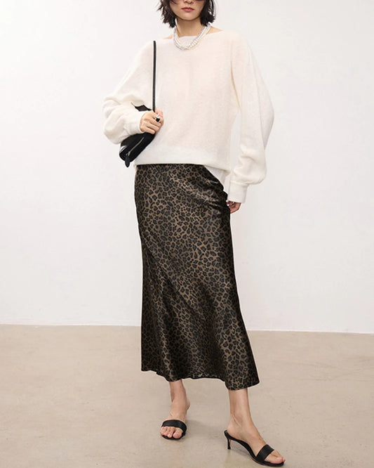 Klassischer Maxi-Seidenrock mit traditionellem Leopard-Druckmuster