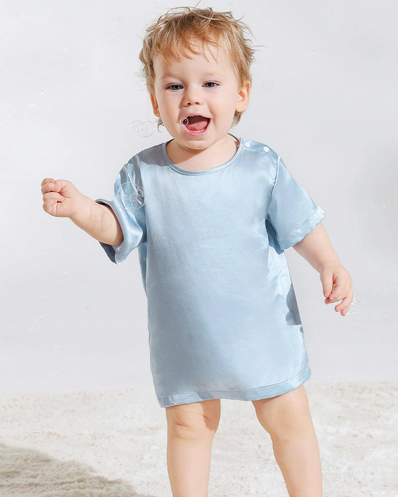 Verleihen Sie der Alltagsgarderobe Ihres Babys eine luxuriöse Note mit unserem kurzärmeligen Baby-Seiden-T-Shirt. Gefertigt aus 100 % reiner Seide, bietet dieses T-Shirt außergewöhnliche Weichheit und höchsten Tragekomfort – ideal für die empfindliche Babyhaut. Die natürliche Atmungsaktivität der Seide sorgt dafür, dass Ihr Baby bei jeder Aktivität angenehm kühl und komfortabel bleibt.