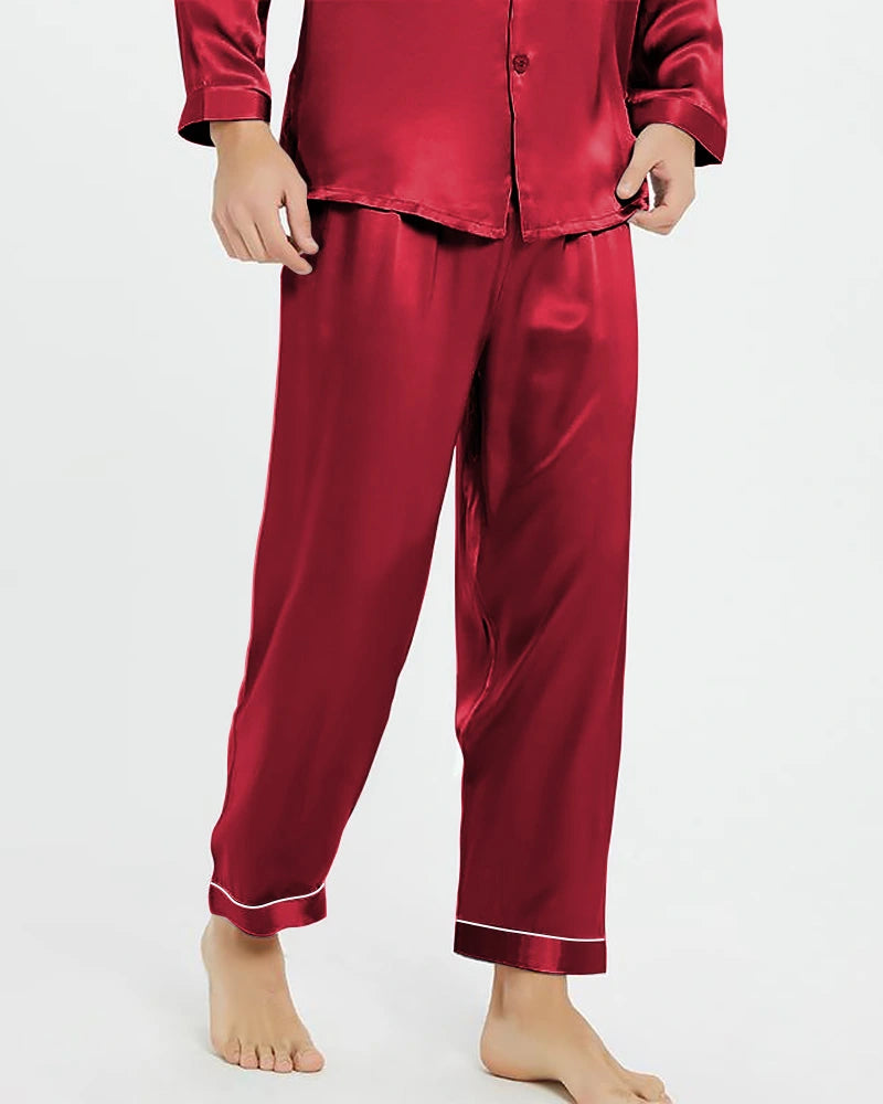 Diese Herren-Seidenpyjamahose ist aus hochwertiger Maulbeerseide gefertigt und bietet ein glattes, atmungsaktives Tragegefühl – ideal zum Schlafen und für entspannte Stunden zu Hause. Die lange, locker geschnittene Silhouette sorgt für mühelosen Komfort, während die kontrastierende Paspelierung am Saum dem klassischen Design eine dezente, elegante Note verleiht.