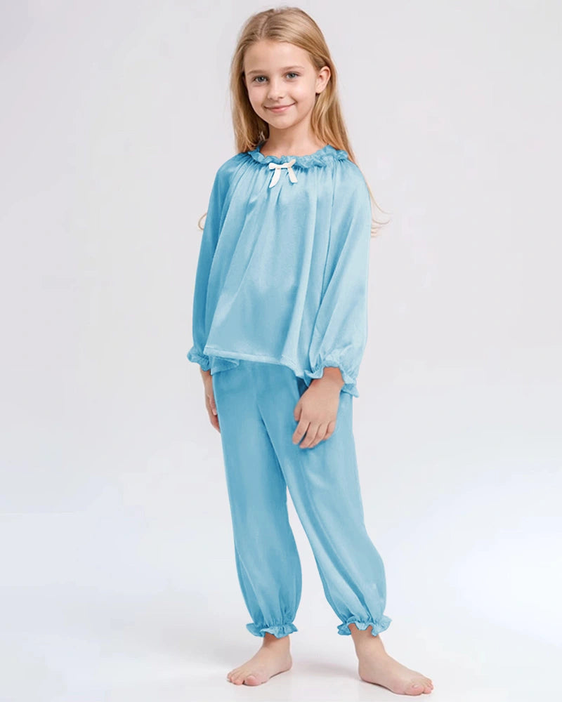 Dieses Seidenpyjama-Set für Mädchen wurde sowohl zum Schlafen als auch zum Entspannen entworfen und vereint Weichheit, Funktionalität und zeitloses Design für täglichen Komfort.