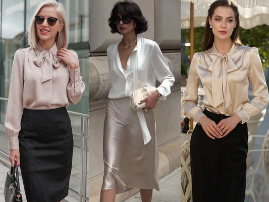 Hergestellt aus luxuriösem 100 % Seide, verfügt diese Bluse über ein zartes Bindeband vorne und einen eleganten Kragen. Perfekt für den Alltag und professionelle Umgebungen. Der leichte Stoff sorgt für einen weichen, fließenden Fall und garantiert Komfort und Raffinesse den ganzen Tag über. Ihr zeitloses Design lässt sich mühelos mit Röcken, Hosen oder Jeans kombinieren und ist somit ein Muss für jede Gelegenheit. Heben Sie Ihren Stil mit dieser schicken und funktionalen Bluse hervor.